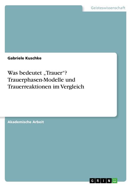 Akademische Arbeit aus dem Jahr 2008 im Fachbereich Soziale Arbeit / Sozialarbeit, Note: 1,7, Ernst-Abbe-Hochschule Jena, ehem. Fachhochschule Jena, Sprache: Deutsch, Abstract: Trauer ist ein Gefühl, mit dem alle Menschen im Laufe ihres Lebens mehrfach konfrontiert werden und dem sich keiner entziehen kann. Wir trauern um den Verlust von Bindung, um einen Gegenstand, einen geliebten Menschen, der gestorben ist, um ein abgeschlossenes Kapitel im Lebenslauf, auch um verlorene Liebe. Doch wie kann ‚Trauer‘ theoretisch beschrieben werden? Wann trauern wir? In welche Phasen kann Trauer unterteilt werden? Und welche Trauerreaktionen lassen sich unterscheiden? Die vorliegende Arbeit widmet sich diesen Fragen rund um das Thema ‚Trauer‘. Im Anschluss an eine Bedeutungsdefinition werden unterschiedliche Ansätze zur Überwindung von Trauer dargestellt. Die Verfasserin vergleicht die Trauerphasen-Modelle nach Verena Kast, John Bowlby und Yorick Spiegel und untersucht verschiedene Trauerreaktionen – das unkomplizierte, normale Trauern sowie das komplizierte, pathologische Trauern.