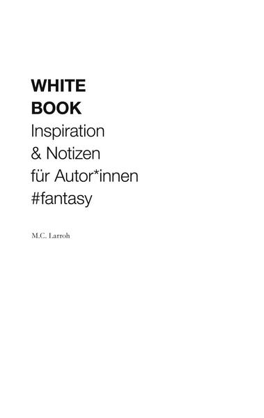 Das White Book ist ein persönliches Notizbuch für Autorinnen und Autoren, eine Quelle der Inspiration und eine Erinnerungsstütze die während des Schreibprozesses als Nachschlagewerk dienen kann. Unterteilt in die Kapitel Plot, Figuren, Weltenbau, Praxishilfe und Motivation deckt das White Book die Hauptschwerpunkte jedes Schreibprozesses ab. Durch die eigenen Ergänzungen der zahlreichen Listen, wird das White Book zu einem persönlichen Begleiter; denn was für den einen Autoren wichtig ist, ist für den anderen irrelevant. Durch den Hashtag #fantasy liegt v.a. im Kapitel Weltenbau das Schwergewicht auf dem Fantasy Genre. Doch das White Book eignet sich genauso für andere Genres. Das White Book ist kein Schreibratgeber.