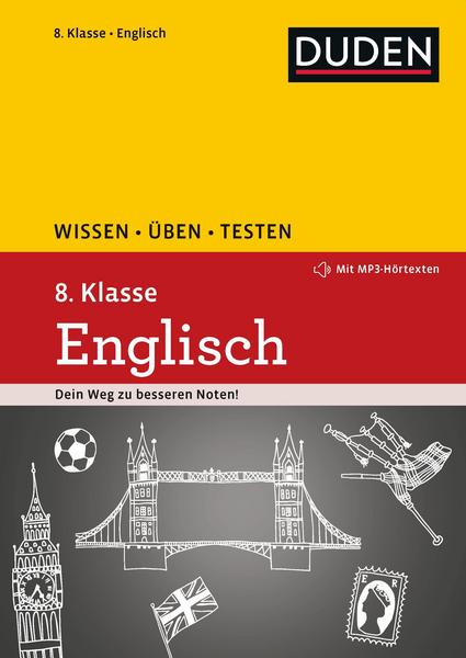 Englischtraining mit System und den drei Erfolgsbausteinen WISSEN, ÜBEN, TESTEN! Dieser Band umfasst alle Lerninhalte des Fachs Englisch in der 8. Klasse: – Zeitformen (present tense, past tense, present perfect, past perfect, future) – Modale Hilfsverben – Passiv und Aktiv – Indirekte Rede – Conditional clauses (if-Sätze) – Nebensatzarten – Satzverkürzungen (Gerundium, Infinitivkonstruktionen, Partizipialkonstruktionen) – Texte lesen und verstehen Die Reihe „Wissen – Üben – Testen‘ bietet dreifaches Training für bessere Noten: Im Wissensteil jedes Kapitels werden alle Regeln anhand passender Beispiele leicht verständlich erläutert. Der Übungsteil enthält zahlreiche Übungsaufgaben in drei Schwierigkeitsstufen für ein individuelles Training. Am Ende jedes Kapitels folgt ein Testteil mit je ein bis drei Klassenarbeiten zur Erfolgskontrolle. Mit herausnehmbarem Lösungsheft und Topthemen im Schnellcheck.